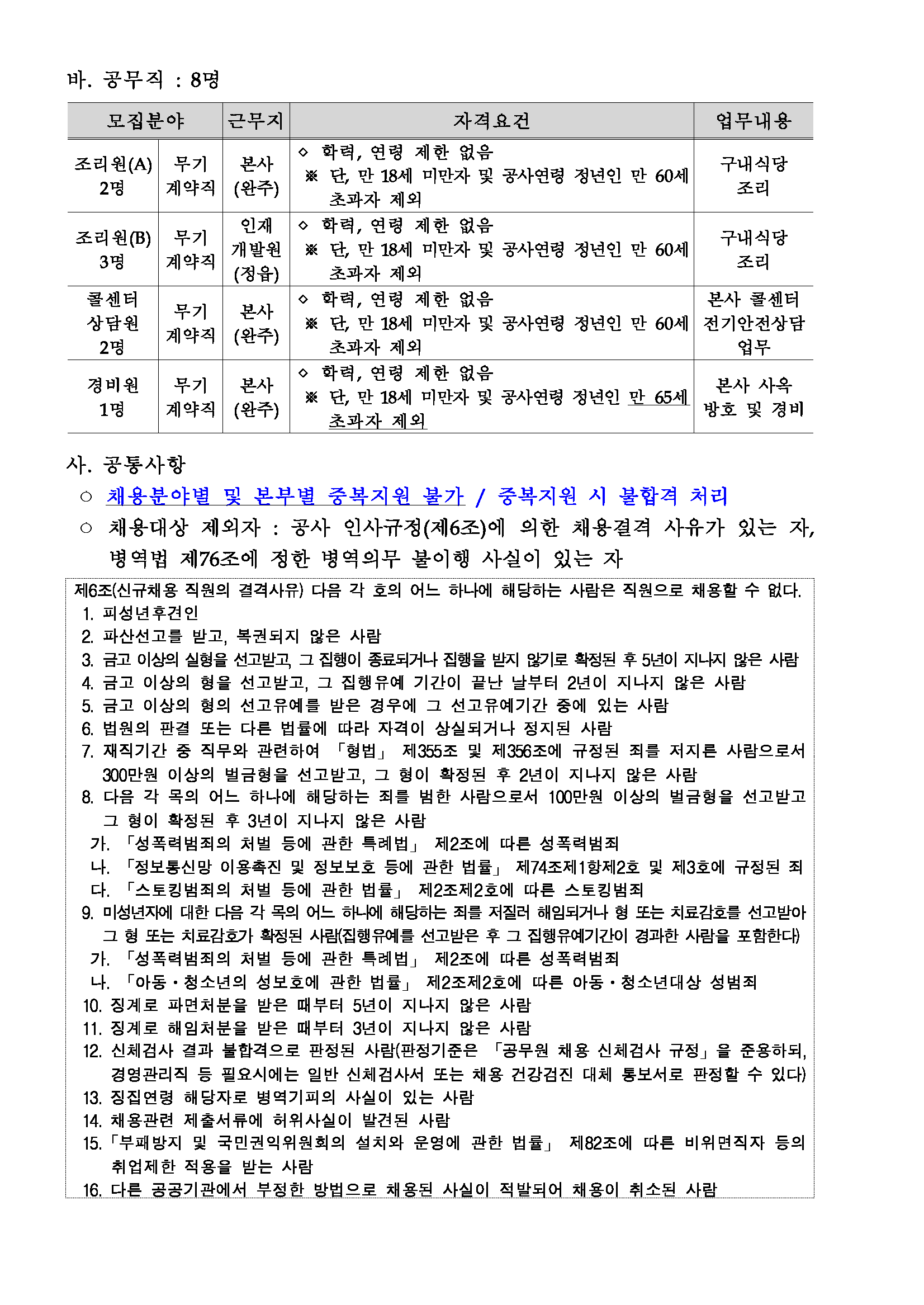[붙임1]2025년 신입, 경력, 공무직 공개채용 채용공고문(0).pdf ( 962.4KB / 67 ) [붙임1]2025년 신입, 경력, 공무직 공개채용 채용공고문(0)_페이지_01.png ( 330.0KB / 62 ) [붙임1]2025년 신입, 경력, 공무직 공개채용 채용공고문(0)_페이지_02.png ( 85.6KB / 59 ) [붙임1]2025년 신입, 경력, 공무직 공개채용 채용공고문(0)_페이지_03.png ( 69.8KB / 61 ) [붙임1]2025년 신입, 경력, 공무직 공개채용 채용공고문(0)_페이지_04.png ( 62.9KB / 72 ) [붙임1]2025년 신입, 경력, 공무직 공개채용 채용공고문(0)_페이지_05.png ( 73.6KB / 64 ) [붙임1]2025년 신입, 경력, 공무직 공개채용 채용공고문(0)_페이지_06.png ( 111.3KB / 70 )